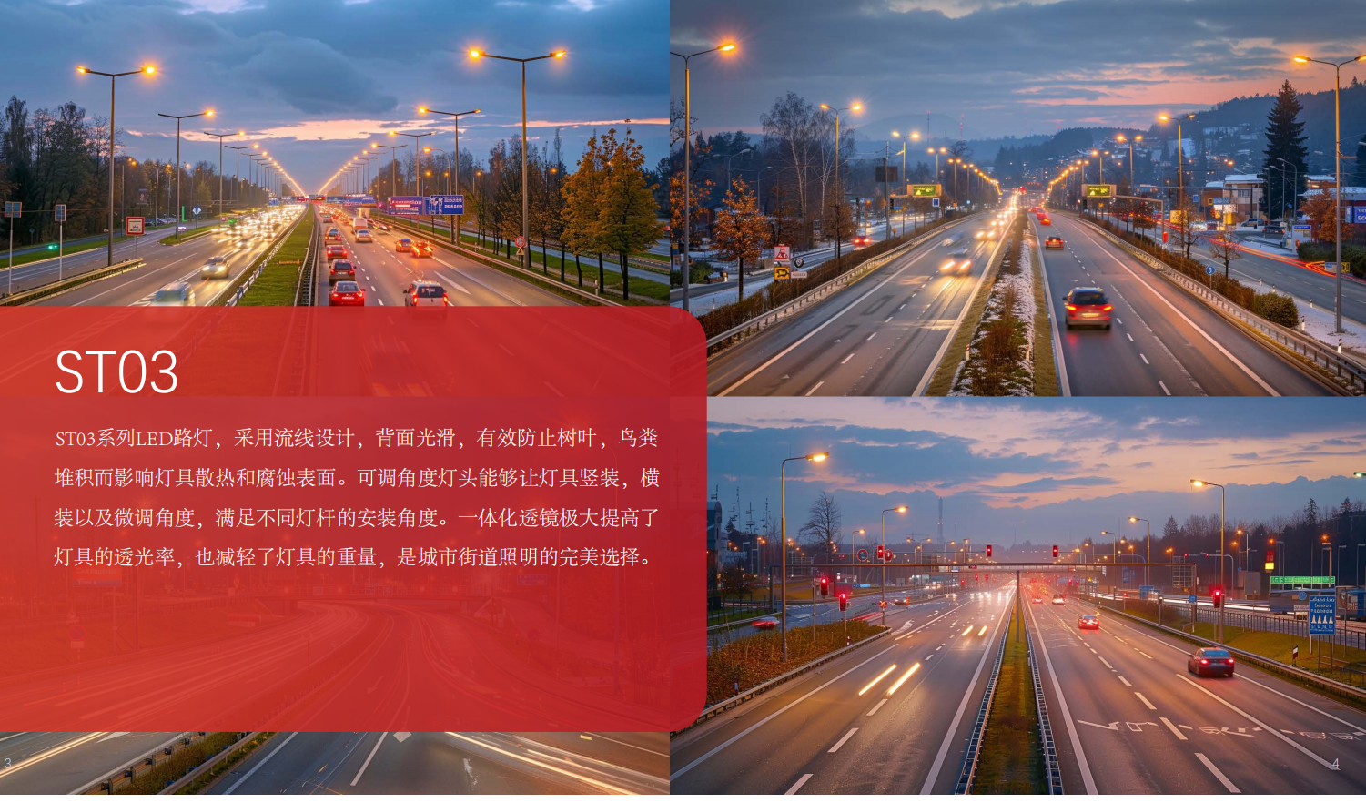 ST03系列LED路灯,采用流线设计,背面光滑,有效防止树叶,鸟粪堆积而影响灯具散热和腐蚀表面。可调角度灯头能够让灯具竖装,横装以及微调角度,满足不同灯杆的安装角度。一体化透镜极大提高了灯具的透光率,也减轻了灯具的重量,是城市街道照明的完美选择。