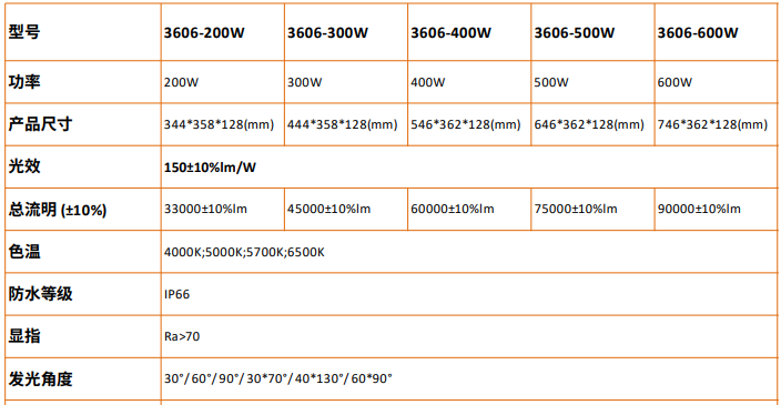 PC 面罩透光率高,光效可达150lm/W热卖款,质量可靠稳定,性价比高功率范围齐全,多种功率可选多种发光角度可选,满足客户多样化需求,5 年质保